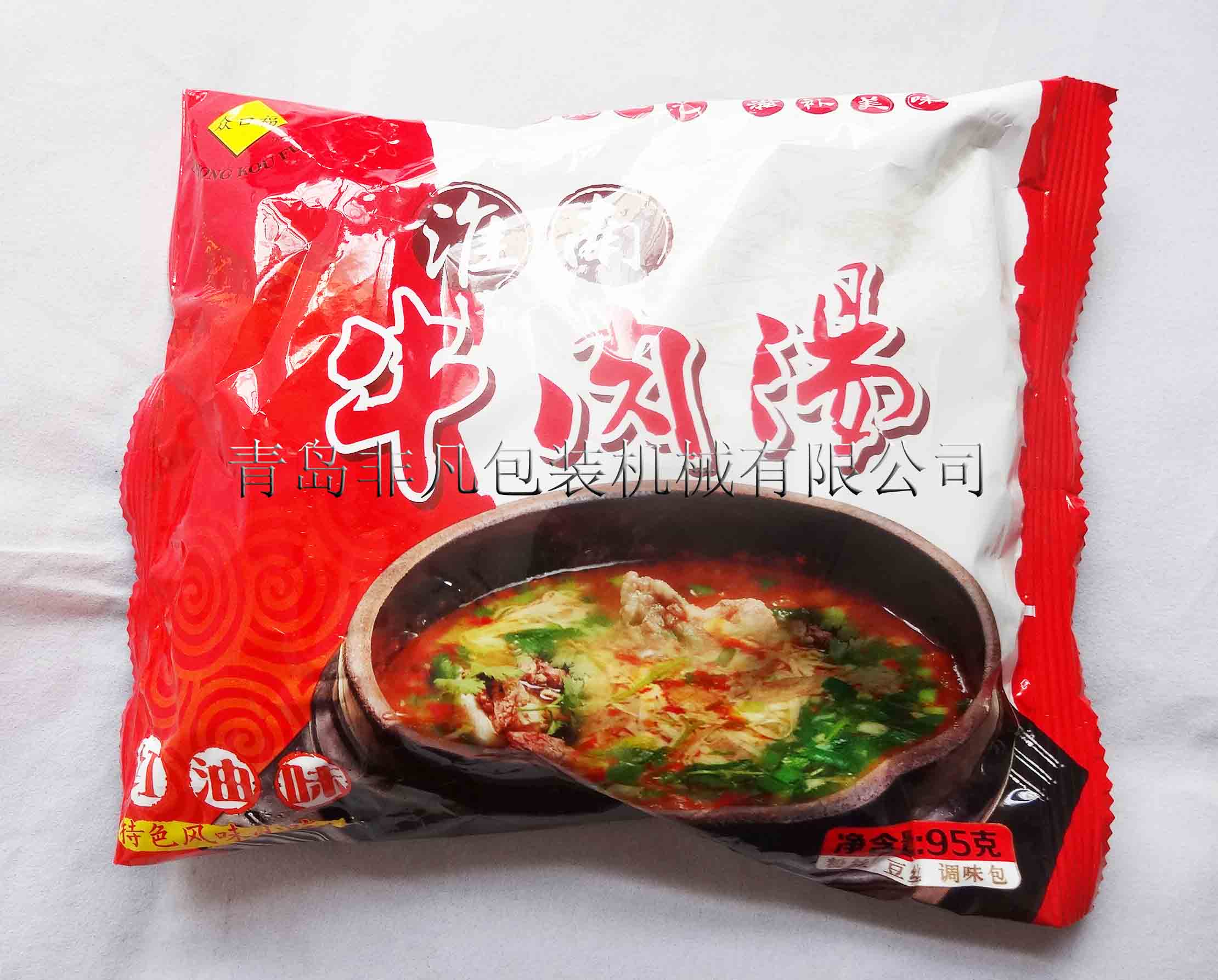 青岛非凡方便面包装机可包装袋装方便面,本机自动完成制袋—充填—封口—切断全过程。整机设计合理、操作简单方便。 触摸屏显示,可直接显示包装膜长度、包装速度、产量、温度等参数。采用PLC控制,减少机械触点,使系统更稳定、可靠,维修更简便。 变频调速,方便简单。采用双向自动追踪,光电检测色标。 本机主要电气元件均采用业内知名品牌电气。